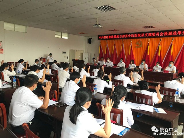 2020年3月18日下午15时,中共伟德平台首页总支部委员会换届选举党员大会顺利召开。自治县委直属机关工委副书记李跃丛同志、自治县卫生健康局党组成员副局长李梅同志出席会议,医院在职党员和退休老党员参加会议,刀永祥同志主持会议。