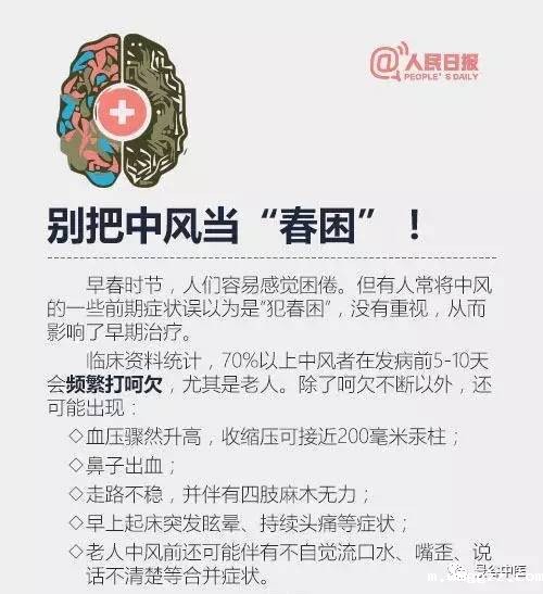 【总犯困当心是脑梗!知道这些或许能救命!】早春是脑梗高发期,一场“倒春寒”就能让脑血管受到严峻考验。临床资料显示,70%以上的中风者在发病前5-10天会频繁打呵欠,常被误以为是犯春困。除了犯困,脑梗发作前还有什么征兆?突发脑梗应如何处理?又该如何预防?