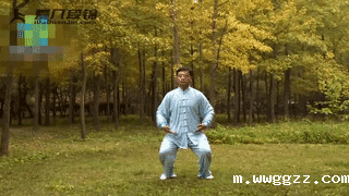 1.站好,两腿膝盖稍微弯曲,两只手掌心向上,捧在小腹前。