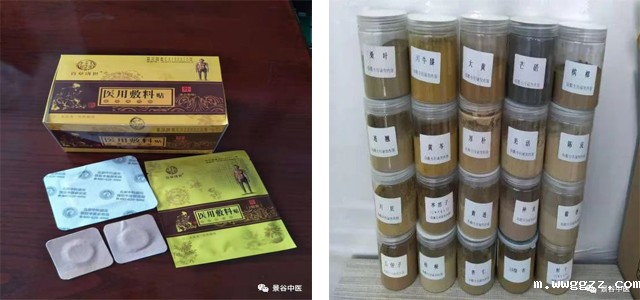 图为北京中科盛元中医研究院的透皮贴和药粉