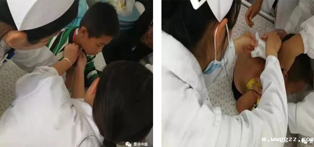 图为护士姐姐为肺炎和发热的小朋友进行贴敷治疗