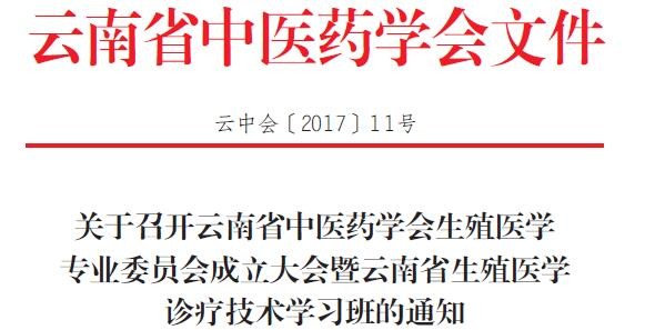 关于召开云南省中医药学会生殖医学专业委员会成立大会暨云南省生殖医学诊疗技术学习班的通知