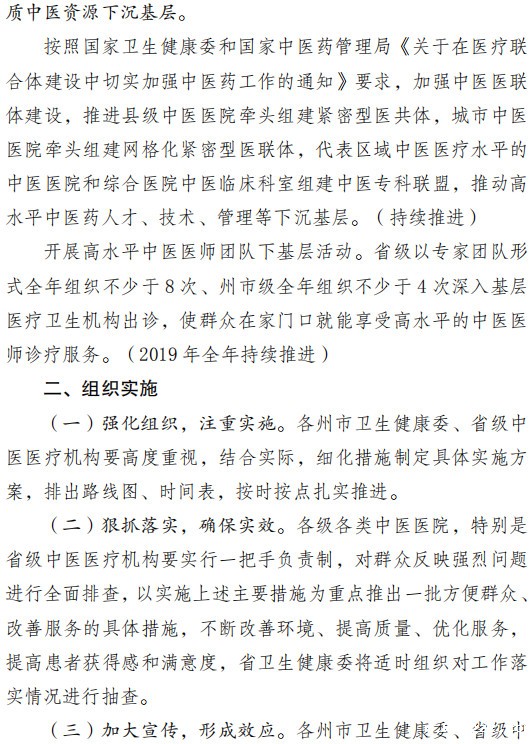 六是方便群众享受优质高效中医药服务,进一步推动优质中医资源下沉基层。加强中医医联体建设,转发国家《关于在医疗联合体建设中切实加强中医药工作的通知》并提出我省要求,推进县级中医医院牵头组建紧密型医共体,推动高水平中医药人才、技术、管理等下沉基层。开展高水平中医医师团队下基层活动,利用中医中药中国行等活动,使群众在家门口就能享受高水平的中医医师诊疗服务。