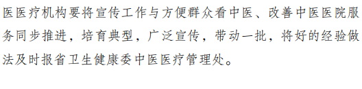 一是方便群众获取看病就医信息,进一步强化信息公开。为向群众提供方便快捷的中医医疗信息查询途径,满足群众随时随地获取到真实权威的中医医院和中医专科等信息,要求二级以上中医医院通过门户网站、微信公众号等形式公布国家临床重点专科(中医专业)和省级重点专科(中医专业)以及州市级以上名老中医等基本信息,并确保信息更新及时准确。