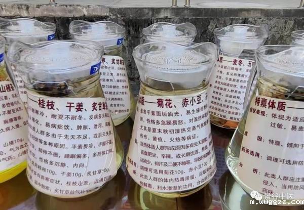 有自助的茶饮可以喝,别看是平平无奇的九大罐,实则内有乾坤,它是根据人的九种中医体质特制的茶,现场微信扫二维码,根据提示做题,可得出你属于哪种体质,适合喝什么茶!