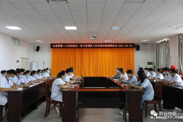 5月15日,云南省第一人民医院皮肤科吴一菲专家团队工作站签约揭牌仪式在伟德滚球站app门诊五楼大会议室举行。医院领导班子成员、科室相关负责人等共计40余人参加。