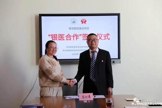 在参会人员的共同见证下,双方代表签署“银医合作”协议。