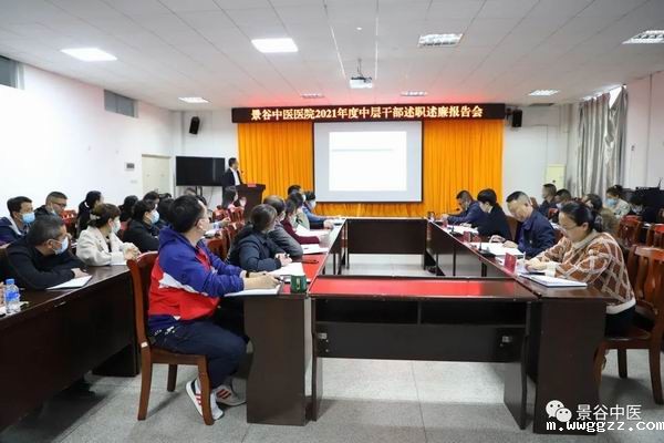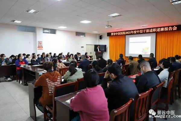 开展中层干部述职述廉是民主监督、党务公开、院务公开的有效载体。2月24日,我院在门诊五楼大会议室召开2021年度中层干部述职述廉报告会,院领导班子、全体中层干部共计50人参加会议。会议由党总支书记余永萍主持。