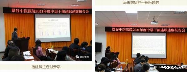 此次述职采用会议述职和书面述职相结合的方式进行。各中层干部结合2021年医院中心工作从个人思想政治、履行党风廉政建设主体责任和行业作风建设主体责任及廉洁自律情况,工作完成情况、存在的困难和问题,2022年工作计划等方面阐述在德、能、勤、绩、廉五项内容中的现实表现和履职情况。其中6名中层干部通过PPT进行现场述职,报告总结成绩客观真实,分析问题实事求是,工作计划务实可行。