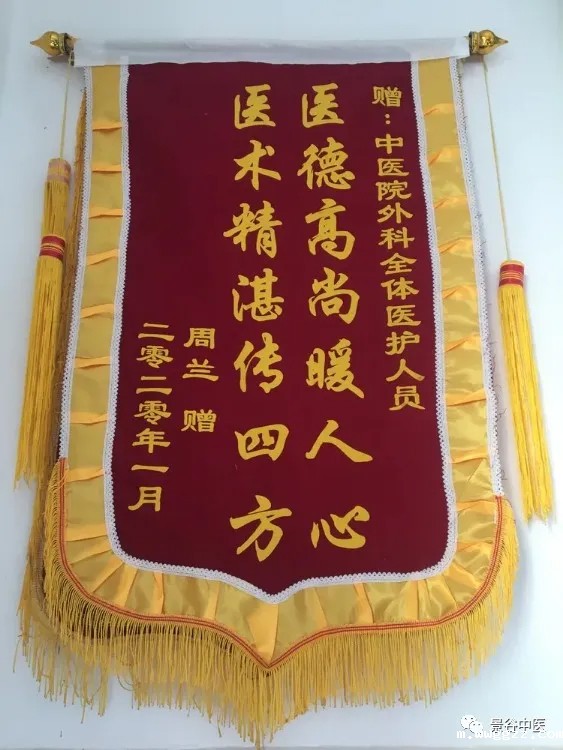2020年3月18日上午,患者周某家属拿着一面写着“ 医德高尚暖人心,医术精湛传四方”字样的锦旗送到外科,表达了他们一家对外科全体医务人员热情服务、精心诊治的感谢。