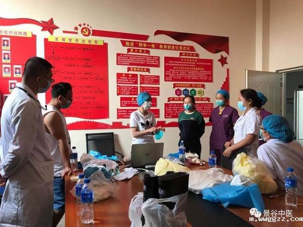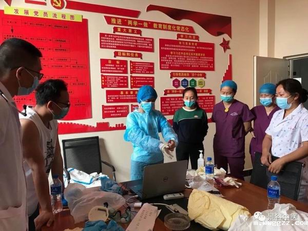 会上,感控办进一步强调新冠疫情防控感控知识,要求大家做实、做细培训,多学多练,注重细节。有实战经验的援鄂医疗队员王碧莉对“穿脱隔离衣”“戴无菌手套”“手卫生”等技术操作向大家进行了实操演示,并详细指导每位医疗队员实战训练,合格上岗。