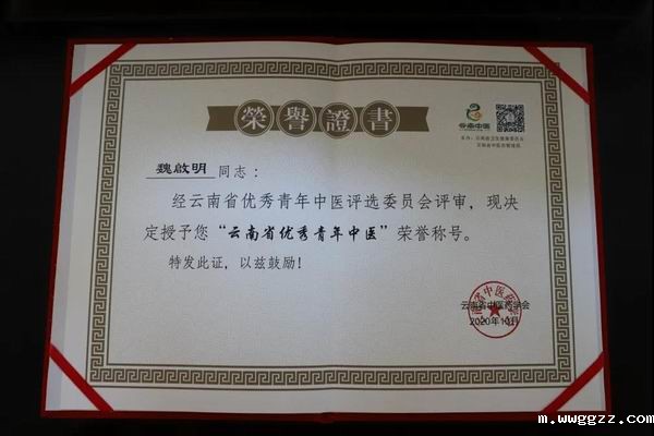 2020年10月23-24日,“首届云南省青年中医传承创新发展论坛”及“云南省第六届优秀青年中医表彰会”在昆明举行,伟德滚球站app魏啟明副主任医师荣获“第六届云南省优秀青年中医”表彰。
