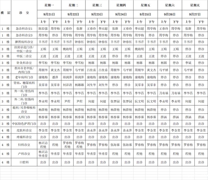 注:出诊医师因特殊情况不能出诊的,以实际为准,不再另行通知,敬请谅解!