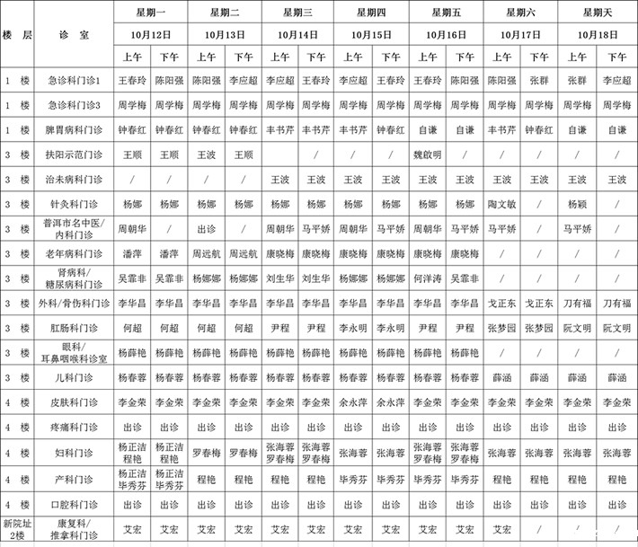 注:出诊医师因特殊情况不能出诊的,以实际为准,不再另行通知,敬请谅解!