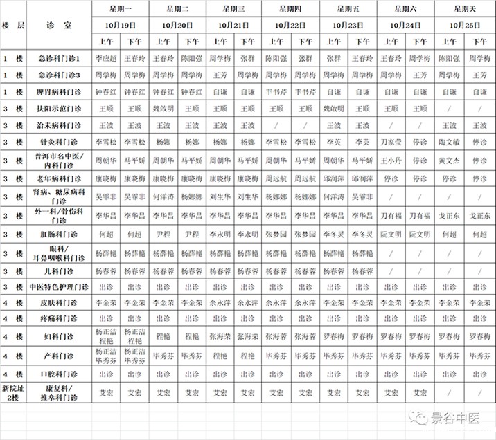 注:出诊医师因特殊情况不能出诊的,以实际为准,不再另行通知,敬请谅解!