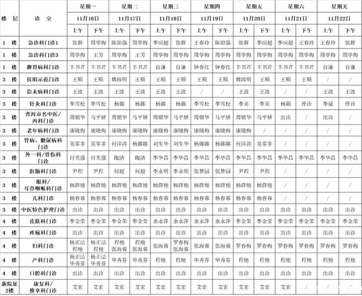 注:出诊医师因特殊情况不能出诊的,以实际为准,不再另行通知,敬请谅解!