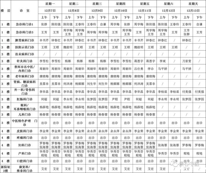 注:出诊医师因特殊情况不能出诊的,以实际为准,不再另行通知,敬请谅解!