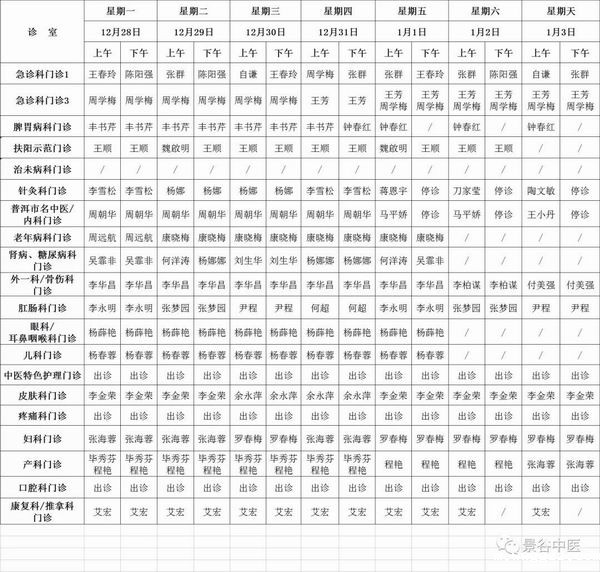 注:出诊医师因特殊情况不能出诊的,以实际为准,不再另行通知,敬请谅解!