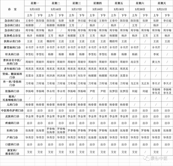 注:出诊医师因特殊情况不能出诊的,以实际为准,不再另行通知,敬请谅解!