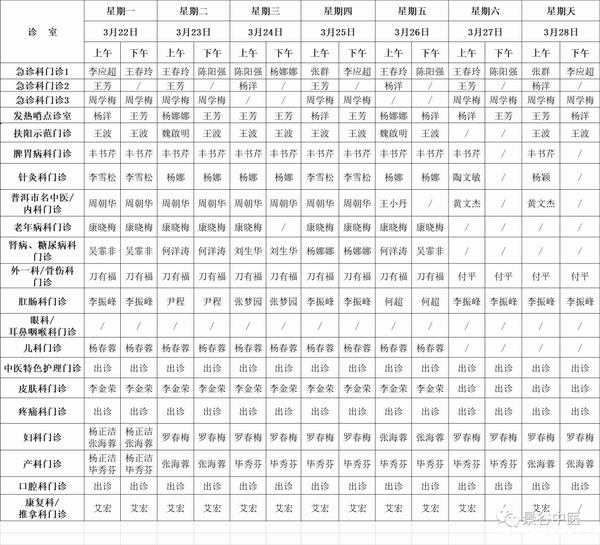 注:出诊医师因特殊情况不能出诊的,以实际为准,不再另行通知,敬请谅解!