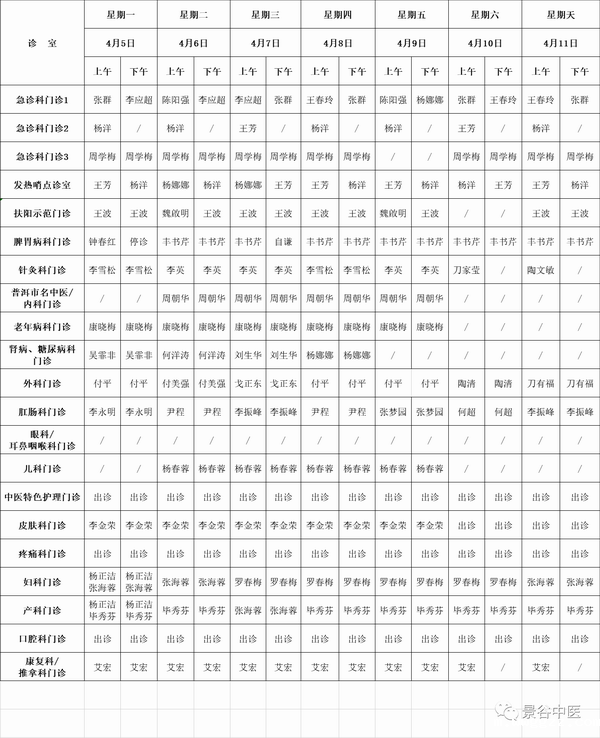 注:出诊医师因特殊情况不能出诊的,以实际为准,不再另行通知,敬请谅解!