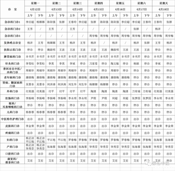 注:出诊医师因特殊情况不能出诊的,以实际为准,不再另行通知,敬请谅解!