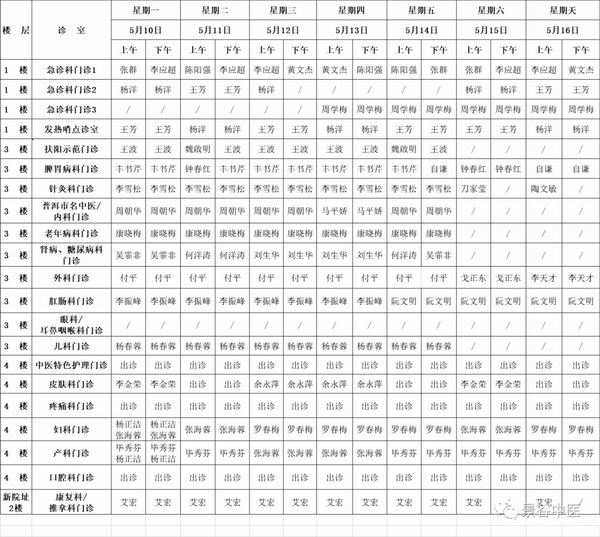 注:出诊医师因特殊情况不能出诊的,以实际为准,不再另行通知,敬请谅解!