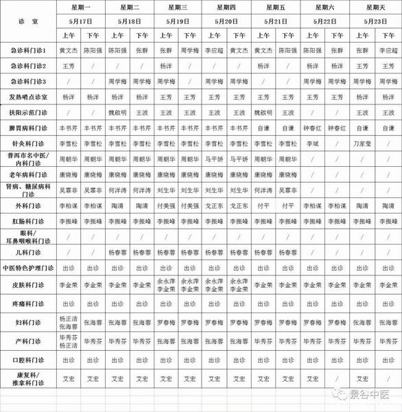 注:出诊医师因特殊情况不能出诊的,以实际为准,不再另行通知,敬请谅解!