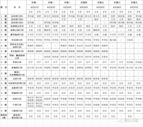 注:出诊医师因特殊情况不能出诊的,以实际为准,不再另行通知,敬请谅解!