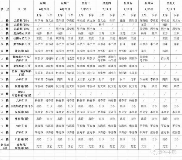 注:出诊医师因特殊情况不能出诊的,以实际为准,不再另行通知,敬请谅解!
