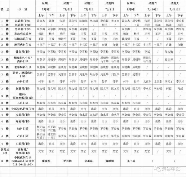 7月5日—7月11日门诊出诊表
