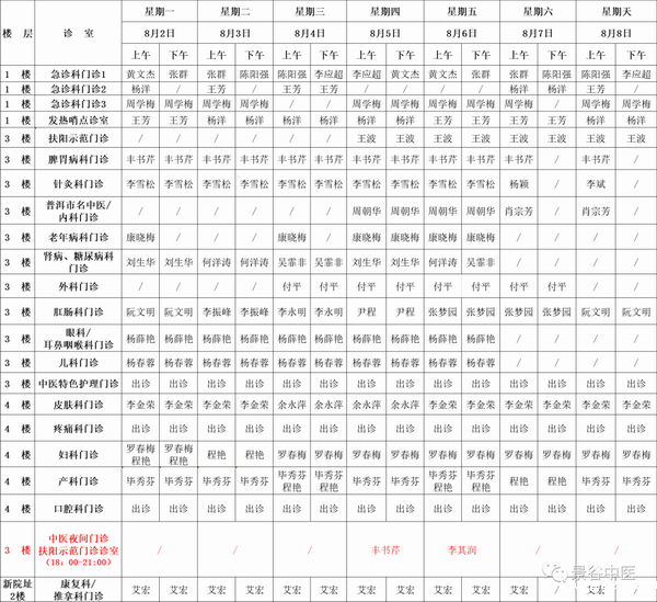 注:出诊医师因特殊情况不能出诊的,以实际为准,不再另行通知,敬请谅解!