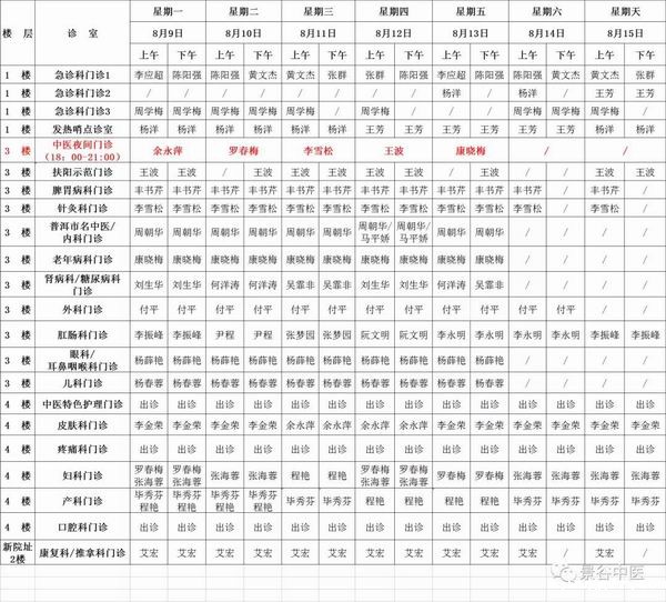 8月9日—8月15日门诊出诊表