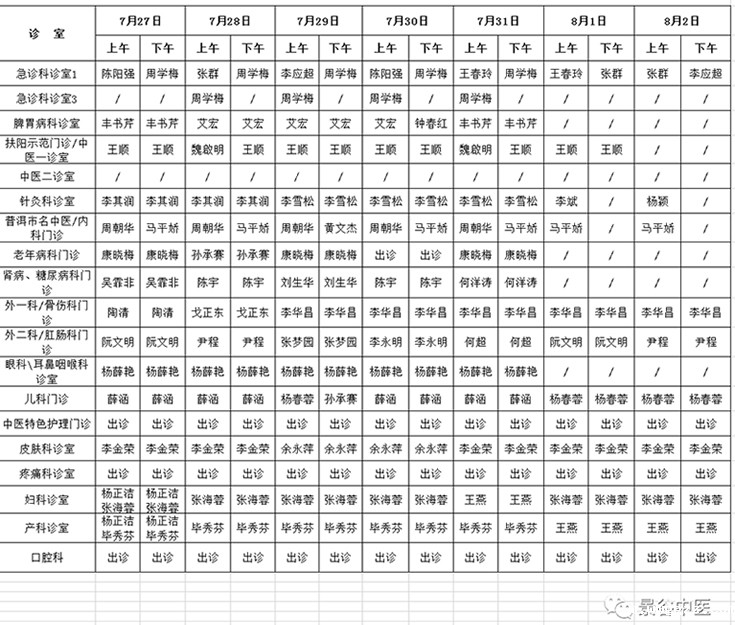 7月27日—8月2日门诊出诊表
