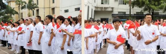 7月1日清晨,医院全体干部职工在操场开展以“扬帆逐梦迎七一,不忘初心跟党走”为主题的升国旗仪式。7点30分,仪式在庄严的国歌声中拉开序幕,全体职工肃立、行注目礼,共同见证鲜红的五星红旗冉冉升起。