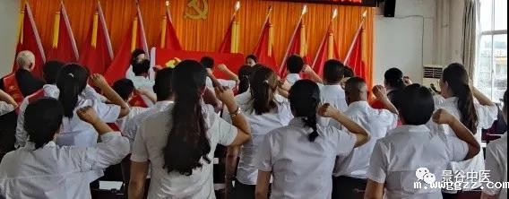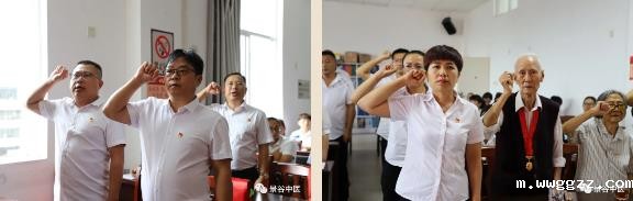 会上,全体党员重温入党誓词,鲜红的党旗下回响着为党的事业奋斗终身的铮铮誓言!