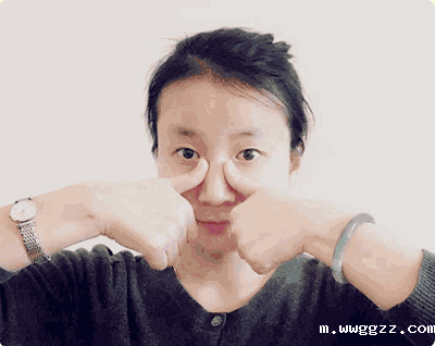 1.左手中指指腹放在左侧鼻梁,右手中指指腹放在右侧鼻梁,两中指沿着鼻子两侧做上下的推擦,从鼻尖到鼻根,往返约20次,以鼻子微微发热、发红为度。