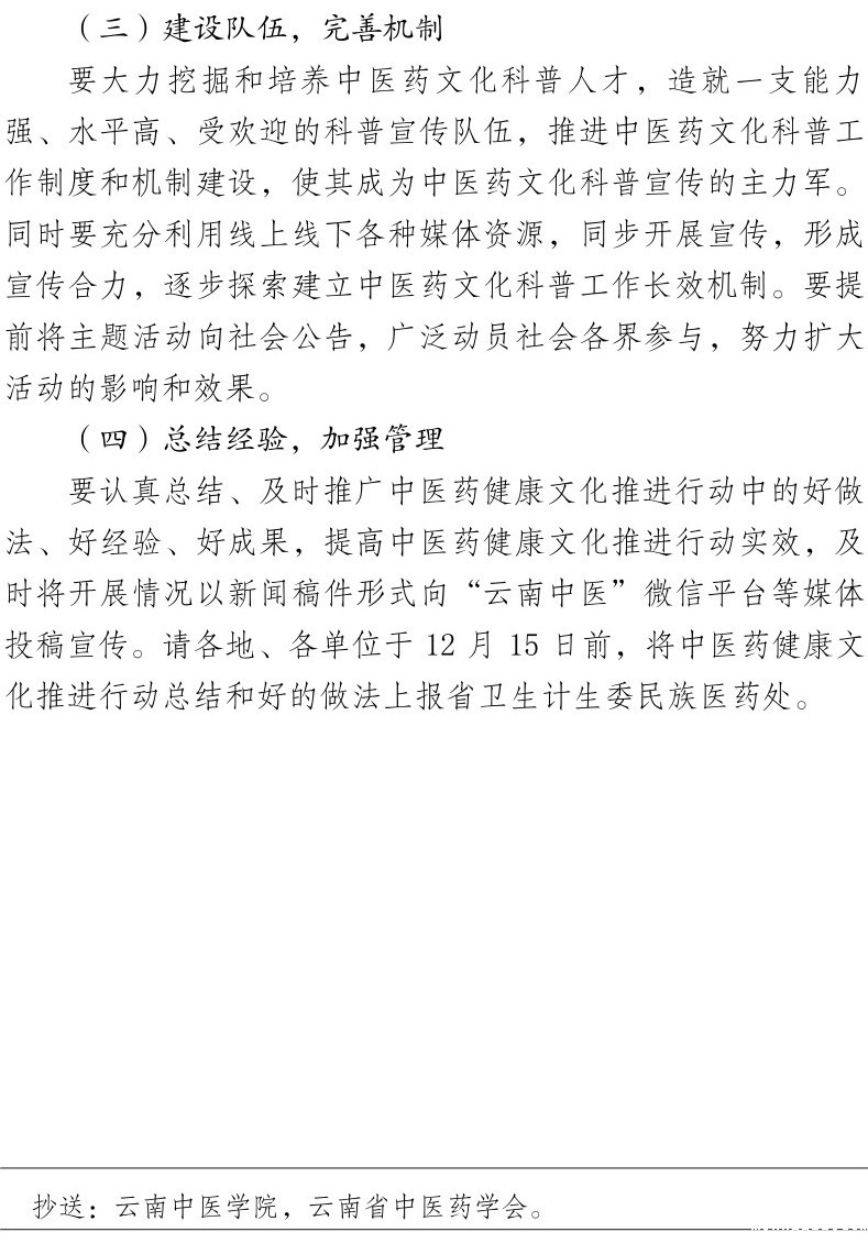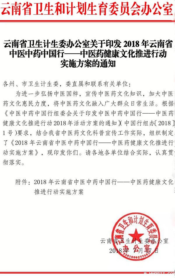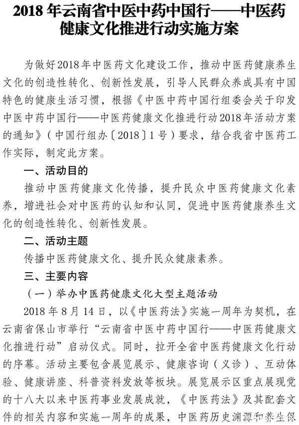 云南省卫生计生委办公室关于印发2018年云南省中医中药中国行——中医药健康文化推进行动实施方案的通知