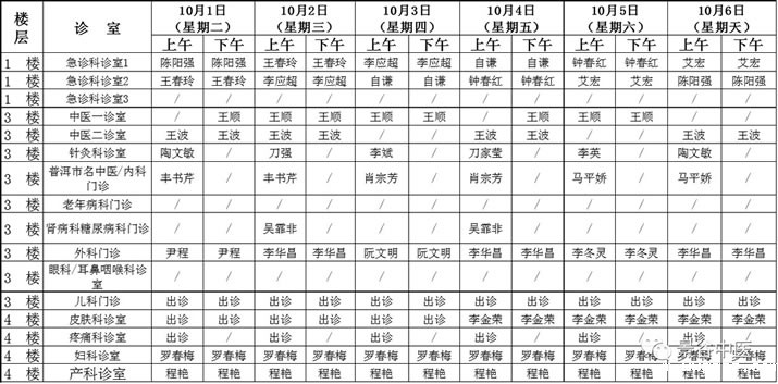 为方便广大患者就医,现将伟德滚球站app2019年国庆期间(2019.10.1-2019.10.6)门诊排班作如下安排: