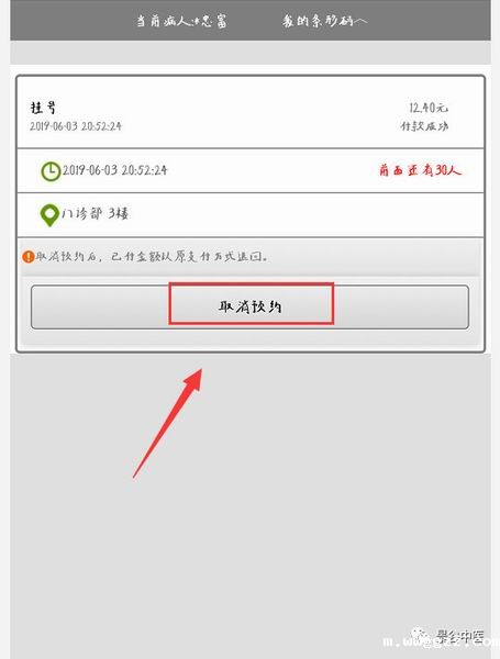 1.退挂号费:点击【查询业务】→【就诊引导】查询出您的挂号记录,点击进去后点击取消预约按钮即可退费,但是需要注意的是,挂号信息为等待就诊的才可以进行退费操作,若已经被医生接诊则无法退费。