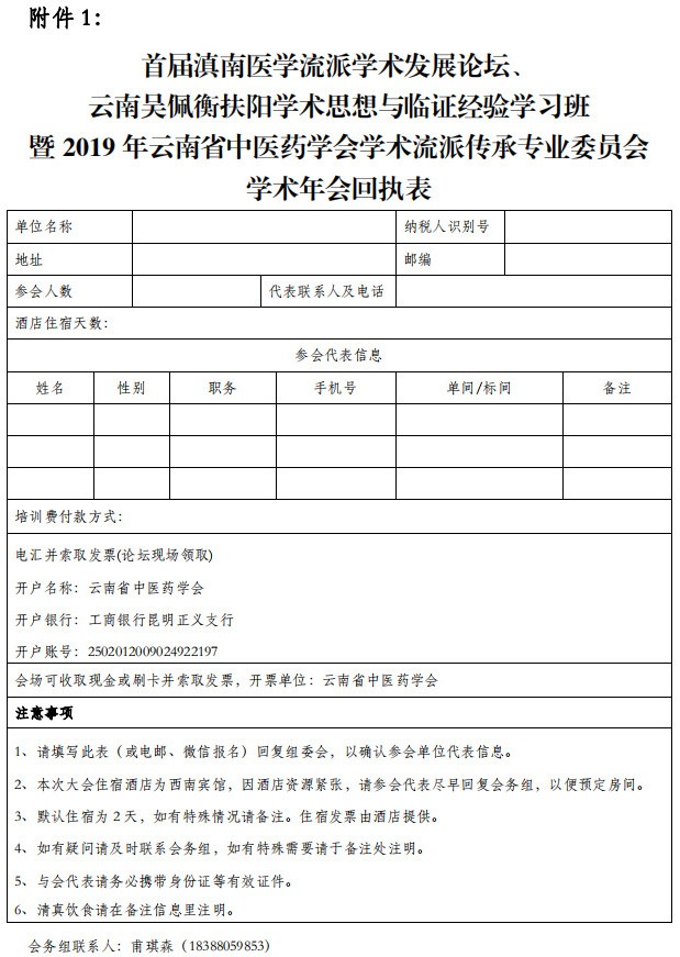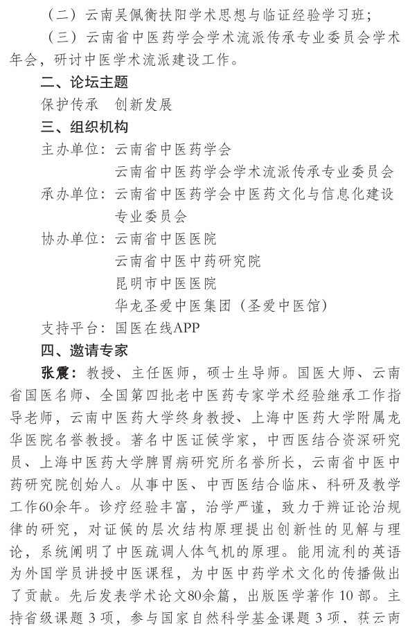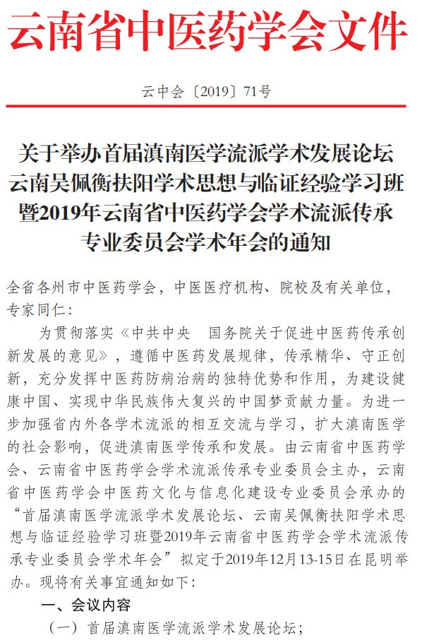 关于举办首届滇南医学流派学术发展论坛云南吴佩衡扶阳学术思想与临证经验学习班的通知