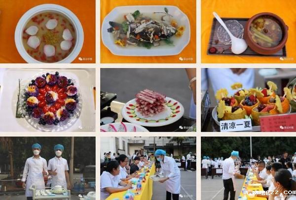 活动现场参赛选手们正在如火如荼的烹饪食材!