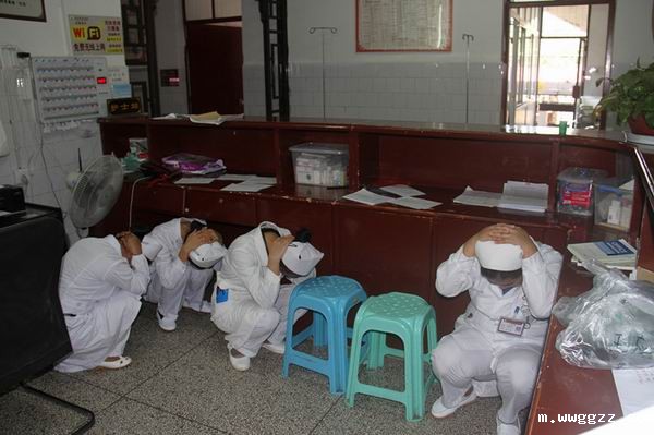 “地震了,大家快躲避!”,随着病房通道的一句喊话,地震演练正式开始,科主任开始喊话,警示地震发生,全体医护人员立即带领病人远离窗口,躲避到桌下或墙角,准备疏散。待确定震情平稳后,科主任发出疏散信号,医护人员立即带领病人快速、有序地撤离病区,前往空旷场地展开救援工作。#p#副标题#e#