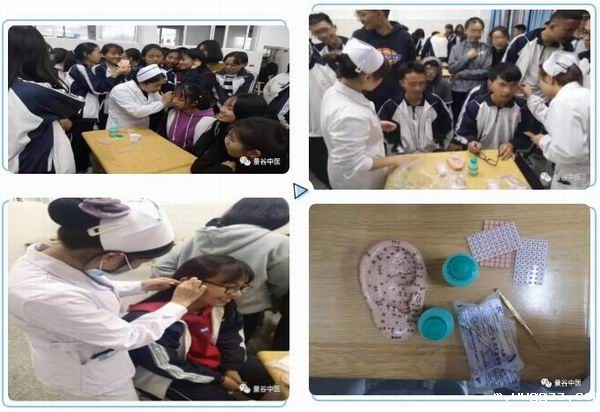 课堂上,阮老师用通俗易懂的语言向同学们讲授了什么是耳穴压籽,耳穴压籽的适应症、功效及注意事项。她提出学习、工作、生活中的压力无处不在,可以通过从食物中摄取“快乐因子”,改善情绪,疏解压力。那哪些食物中含有“快乐因子”呢?中医药在调节情绪上的作用?她用生动形象的授课为同学们传授一堂科学、准确、通俗易懂的中医药健康知识讲座,普及了具有中医特色的健康生活理念及养生防病知识,受到同学们的一致好评。同时,我院急诊科的护士们向同学们现场展示了中医特色诊疗保健方法——耳穴压籽,同学们都踊跃参与,期待更细致、近距离地接触伟德平台地址,现场气氛十分活跃。