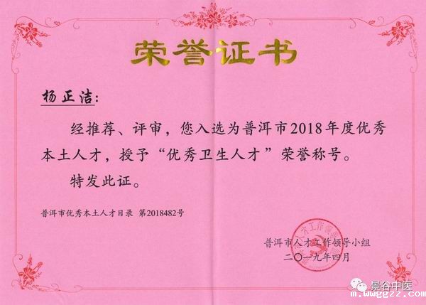 伟德平台首页杨正洁医生获普洱市“优秀本土人才”殊荣